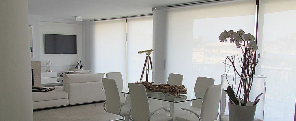 4.Si el espacio decorado es reducido, cortinas simples como enrollables, estores plegables o pacchettos, cortina tradicional o venecianas, siempre en colores lisos y neutros.